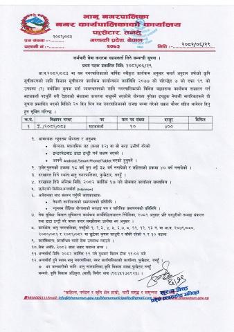 कृषिमा रुपान्तरण,आर्थिक विकास र सेवा प्रवाहमा सुचना प्रविधिको प्रयोग परीयोजना (VANOO PROJECT)कार्यान्वयनका लागि आवेदन पेश गर्ने सम्बन्धी सूचना!!
