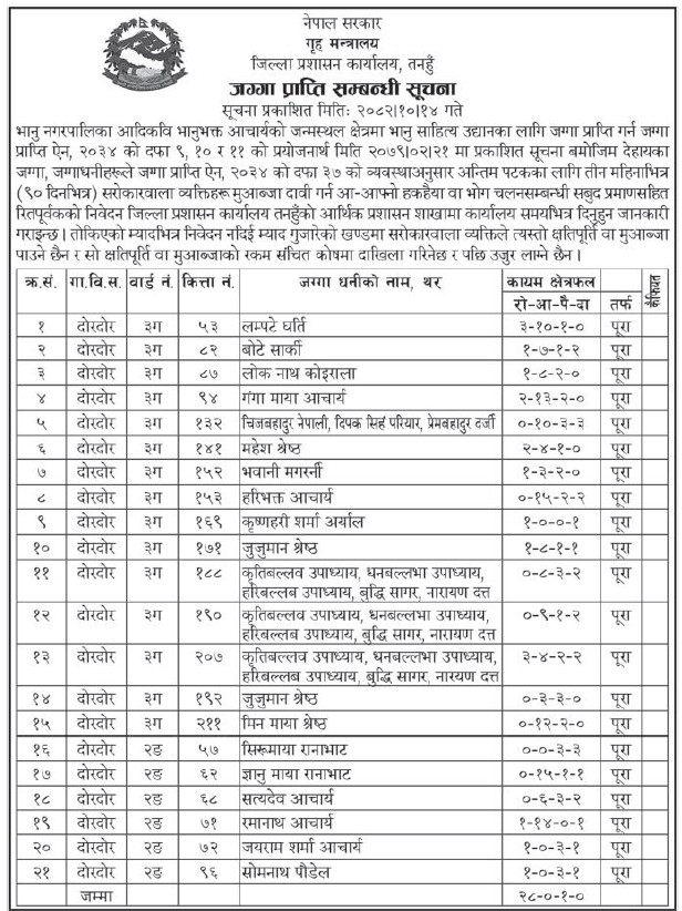 » जग्गा प्राप्ति सम्बन्धी सूचना !