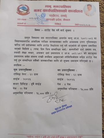 बोलपत्र स्वीकृत गर्ने आशयको सूचना!!!