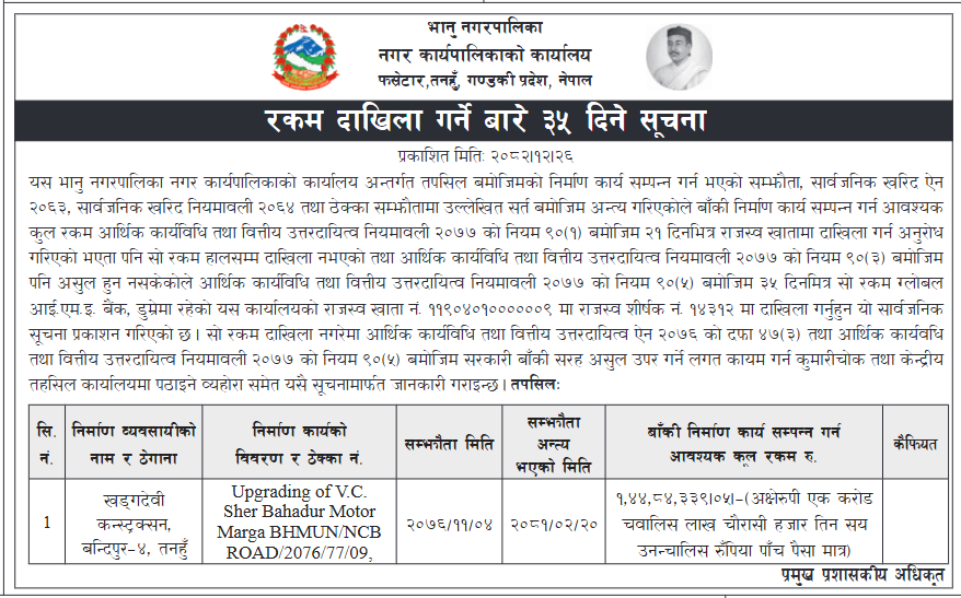 » रकम दाखिला गर्ने बारे ३५ दिने सूचना!!!