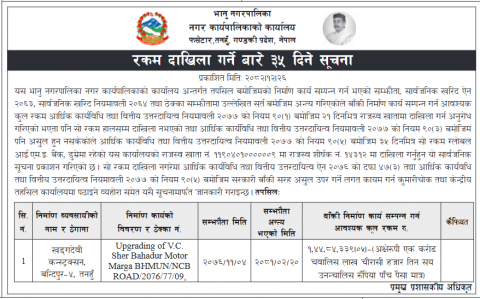 रकम दाखिला गर्ने बारे ३५ दिने सूचना!!!