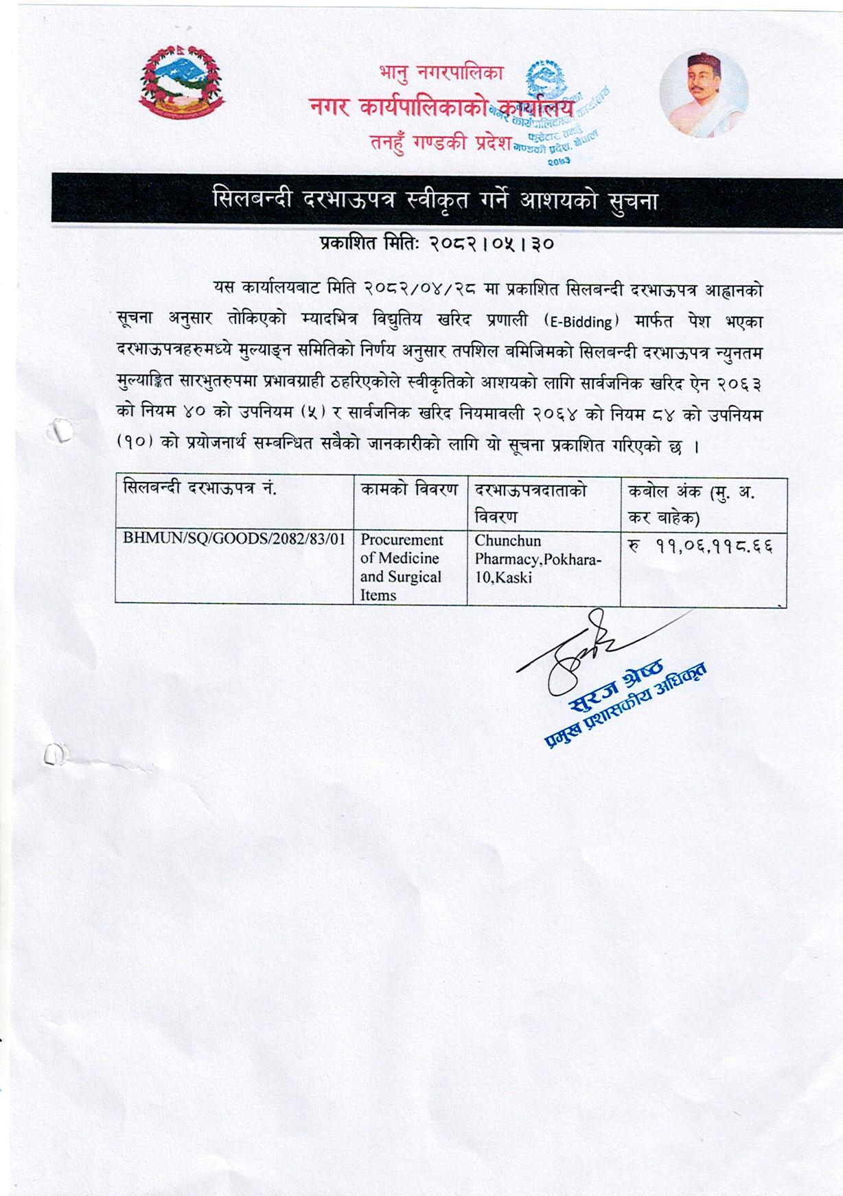 बोलपत्र स्वीकृत गर्ने आशयको सूचना!!!