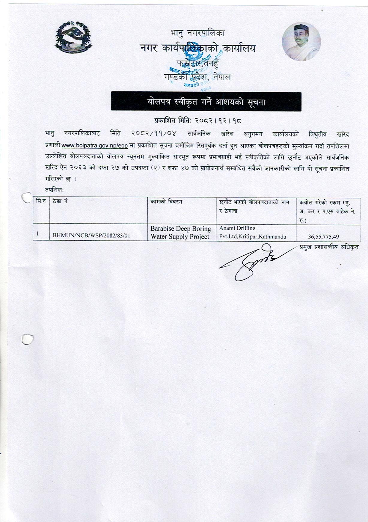भानु नगरपालिका,नगरकार्यपालिकाको कार्यालय,गण्डकी प्रदेश,तनहुँ,नेपाल