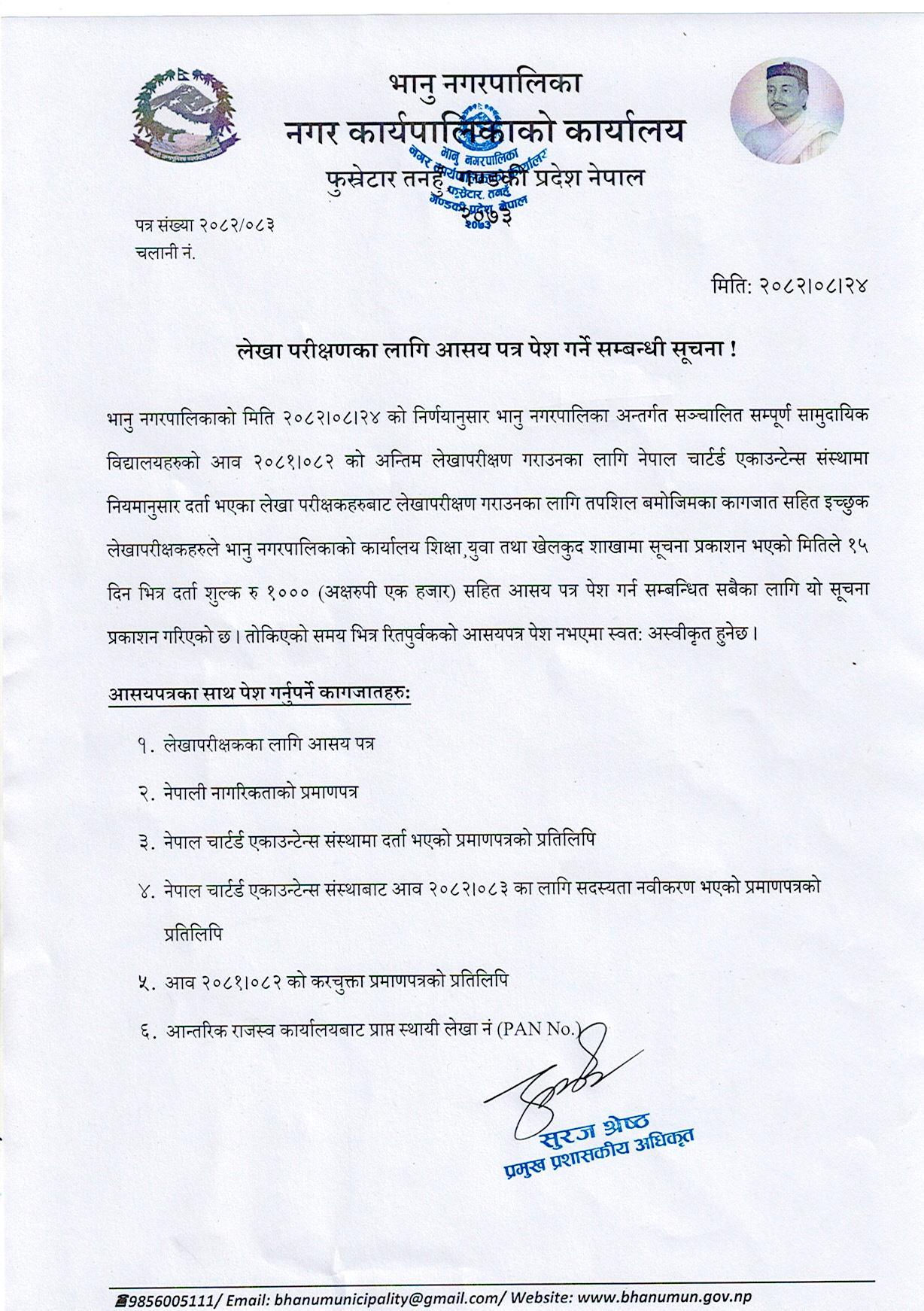 लेखा परिक्षणका लागि आसय पत्र पेश गर्ने सम्बन्धी सूचना!!!