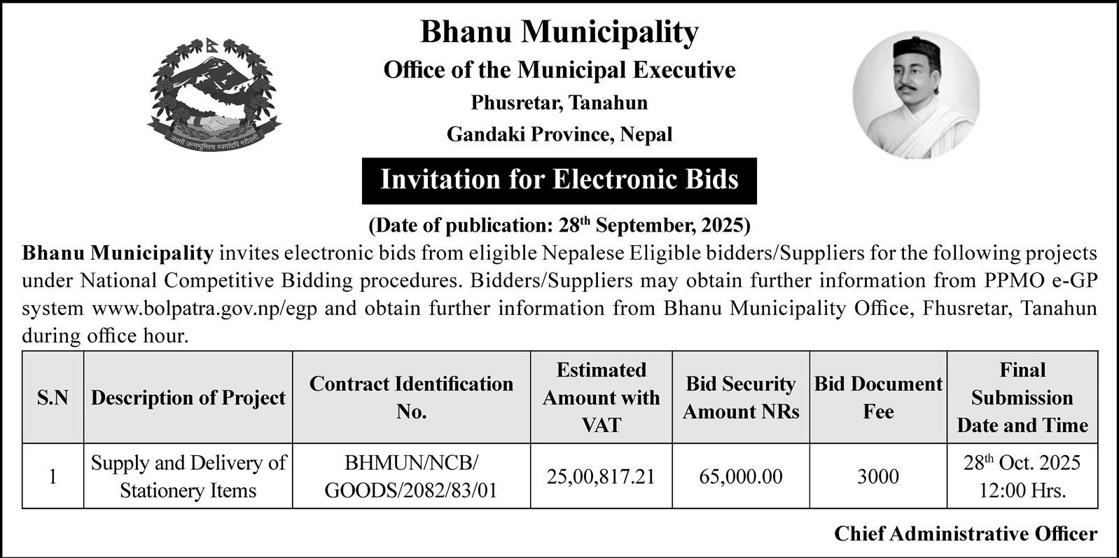 भानु नगरपालिकाको क्षेत्राधिकार भित्रको नदीजन्य पदार्थ (ढुङ्गा, गिट्टी, वालुवा) सङ्कलन, उपयोग र विक्री वितरणका लागि विद्युतीय र गोप्य सिलबन्दी बोलपत्र आव्हानको सूचना !