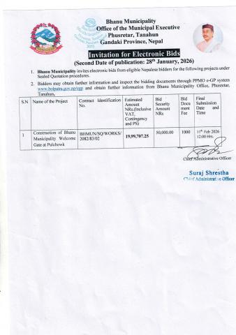 » Invitation of Electronic Bids for Construction of Bhanu Municipality Welcome Gate.